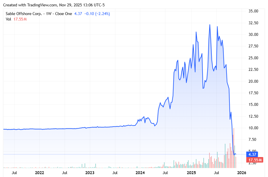 On 3 November 2025, Sable announced that Exxon had pushed the loan maturity to March 2027 on harsher terms. The rate went from 10 percent to 15 percent, and Sable now had to raise at least 225 million dollars of new equity. The stock dropped about 25 percent that day.