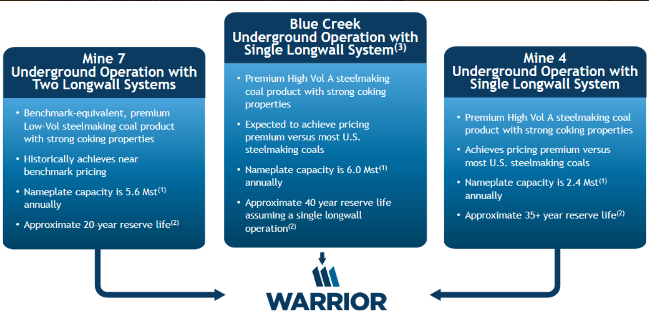 HCC operates only three mines — Mine 7 and Mine 4, both dating back to 1974, plus the new Blue Creek mine that began operations in 2024. All three are underground, concentrated in a single region southwest of Birmingham, Alabama.Alpha Met Resources, on the other hand, operates 21 mines across seven different complexes, with a mix of underground and surface operations. Its output is more than double that of HCC.