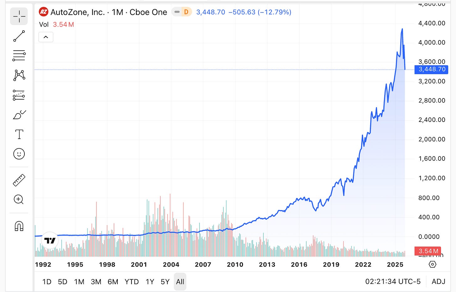 AutoZone reduced its share count by nearly 90%. Net income went up about 10x. EPS went up about 90x. Still think this is a boring company?AutoZone sells car parts and looks boring. That’s the point.