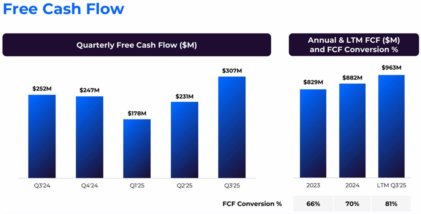 Through the first nine months of 2025, Match generated $963 million of operating cash flow and approximately $716 million of free cash flow. Management later raised full year 2025 free cash flow guidance to about $1.11 to $1.14 billion. Match is best described as a pure cash cow.
