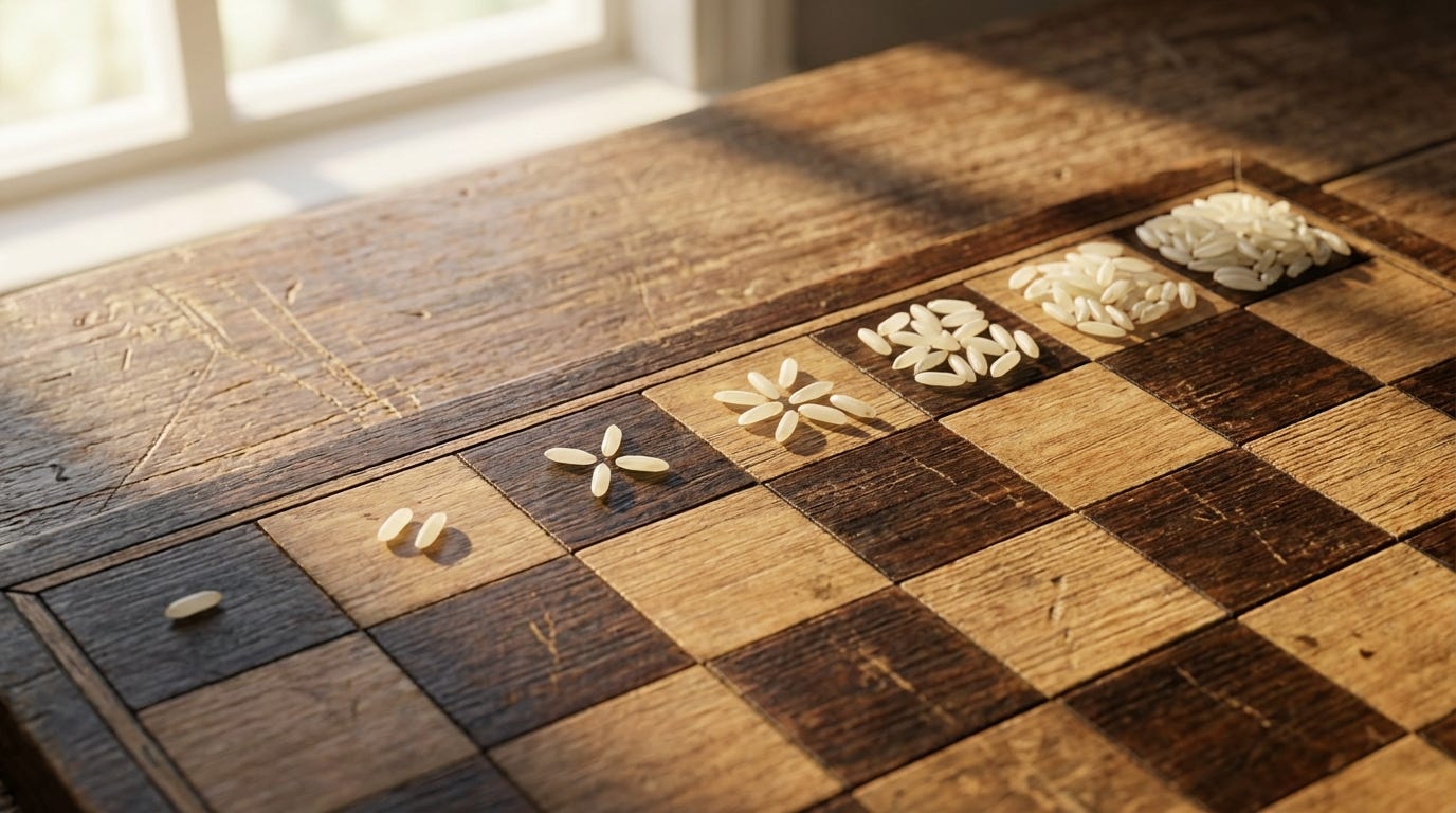 Just give me rice, he said. One grain on the first square of the chessboard, two on the second, four on the third, and so on. Keep doubling the number of grains on every square, all the way to the last one, the sixty-fourth.